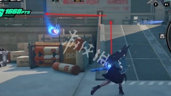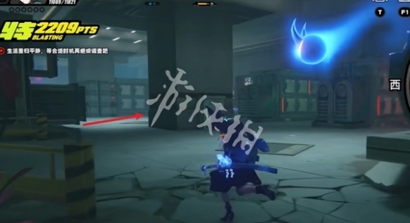 32、需要将方框处的目标崩解,从箭头处绕一下即可开启宝箱。