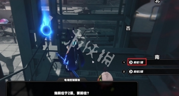 34、原路返回,走到图中的位置时,下去坐电梯,去1层。