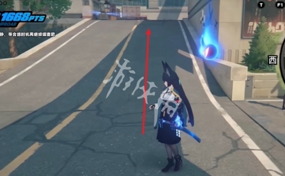 2、到达后,往箭头处的小巷子走,里面有个以太同调。