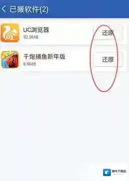 6、就会出现所以已搬家的软件,点击还原,同样的操作,就可以了。