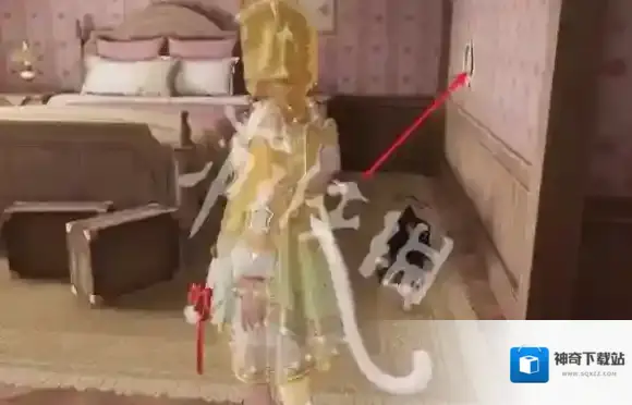 6、进入后,在床旁边的墙壁上可以看到史丢丢,过去调查即可。