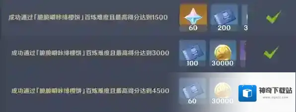 2、成功通过[脆脆噼咔绯樱饼]百炼难度且最高得分达到3000