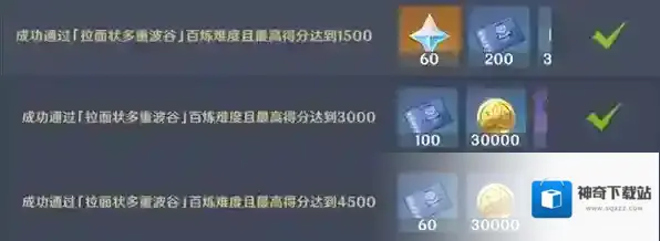 2、成功通过[拉面状多重波谷]百炼难度且最高得分达到3000