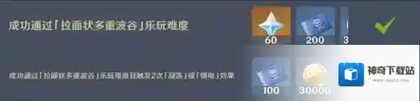 2、成功通过[拉面状多重波谷]]乐玩难度且触发2次[凝冻]或[馈电]效果。