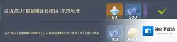 2、成功通过[脆脆噼咔绯樱饼]乐玩难度且触发2次[爆轰]或[锐化]效果