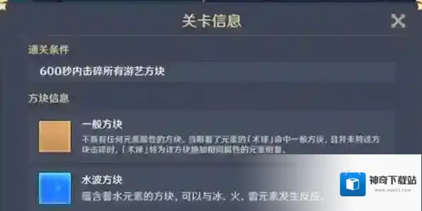2、术球与方块产生冻结反应(冰X水),冻结的所有方块,再次攻击全部破坏。