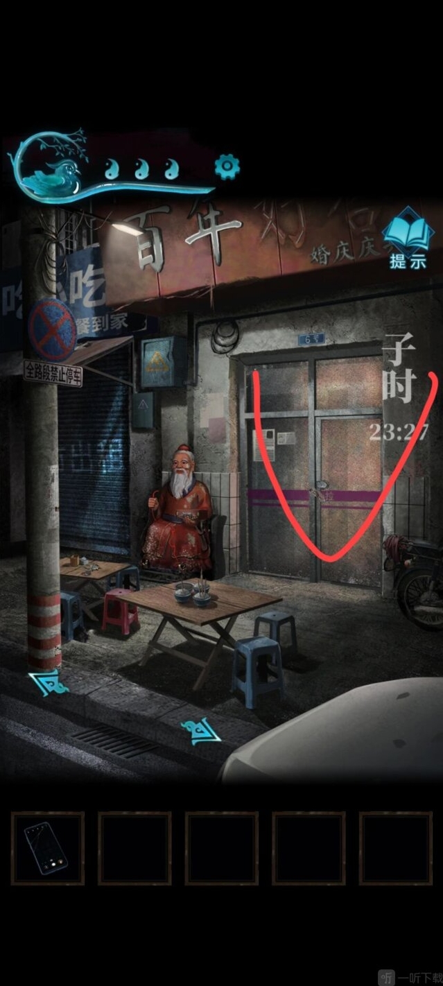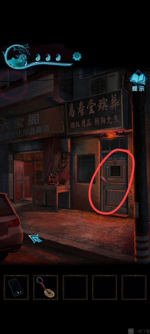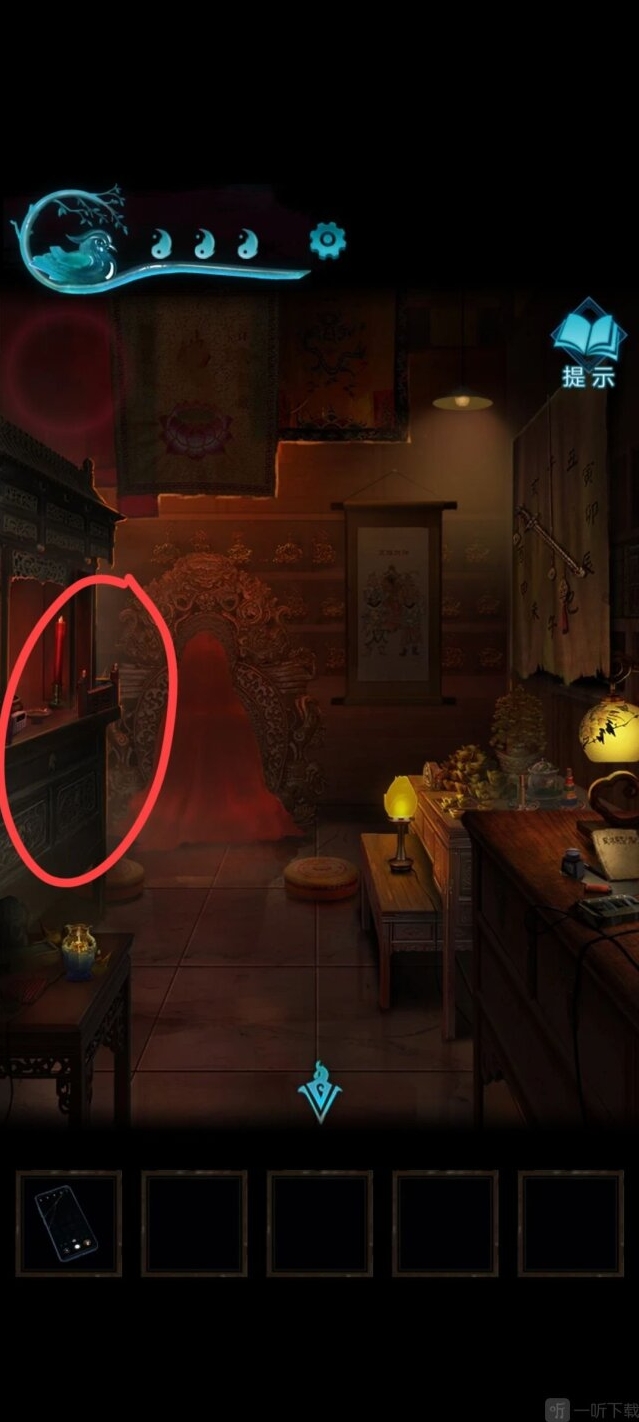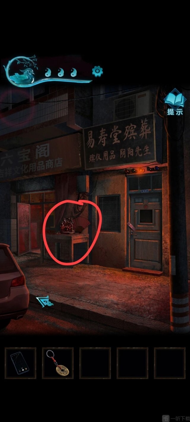 到车的位置,按照顺序点香,比较难点,点完获得字迹,可以解开山洞前面石狮子脚底下的机关,获得一把钥匙。