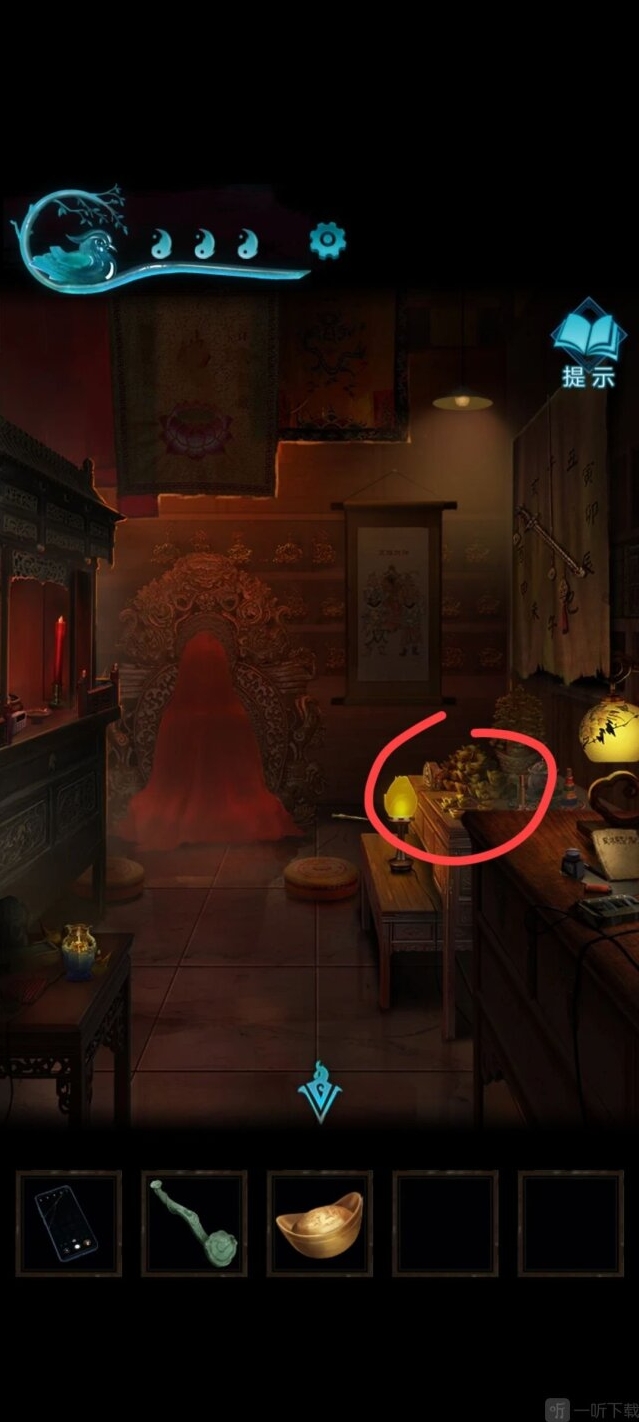 9、使用香灰铲将门打开,即可来到下一场景:院子。