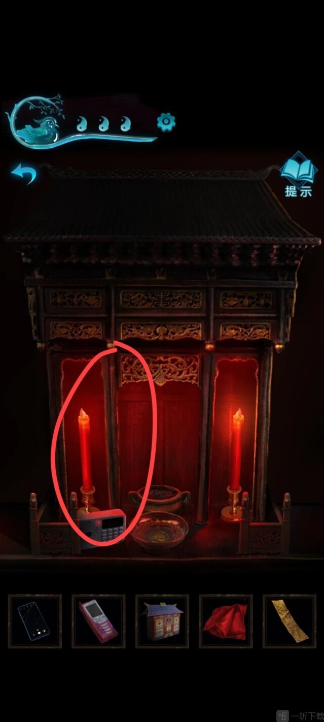 36、点击供台,把两个符纸贴上去,把香插上,把房子放到空白盘子上,然后打火机点燃。第二章游戏结束