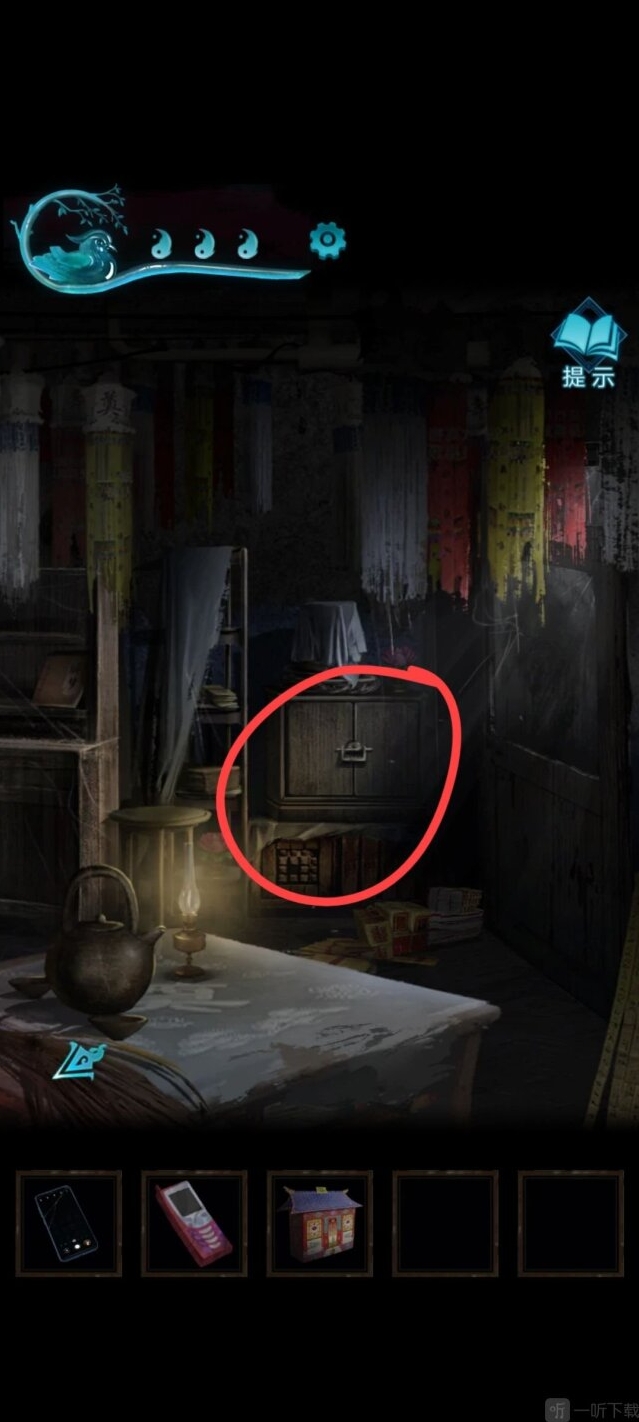 16、回到初始房间,点击右侧小柜子。