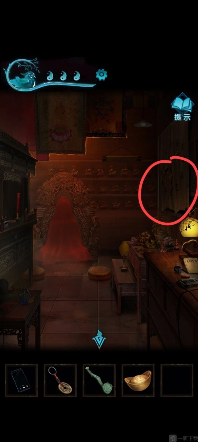 38、依次按照“虔请魕娘子送子来”的顺序按下按键即可打开柜门,从柜子中可以获得一把钥匙。