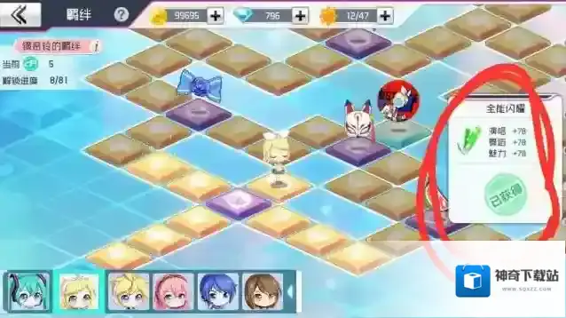 角色属性–演唱–就是增加perfect的判定范围啦,所以认真看一下角色的属性吧。