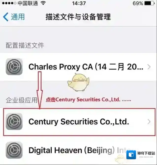 1、在设备中点击设置 通用 描述文件(iOS9上叫“描述文件”, iOS10上叫“设备管理),,找到刚才同名的描述文件