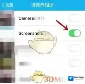 在你想要上传的相册的位置,点击一下那个按钮,让其变为绿色即为选择成功。