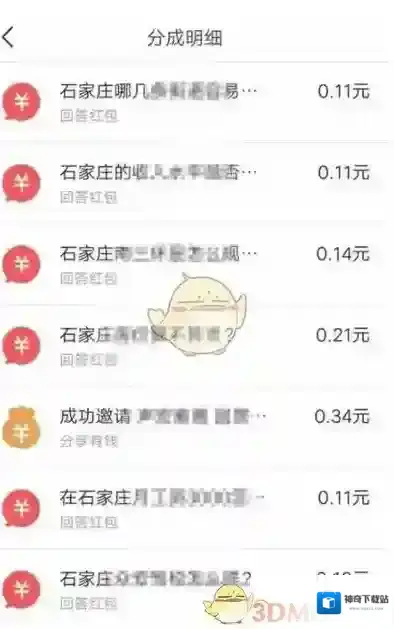 5.在收入明细里也可以看一下每条回答给自己获取的红包明细,非常的清楚!