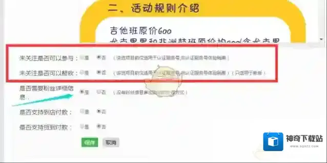 3.点击左侧的微信商城,找到“微砍价”功能,点击一下,然后点击—添加砍价。填写关键词、标题等内容,上’传回复图片,注意选择新版本,设置每人的砍价时间、原价、底价以及每次砍价的范围。奖项及设置规则详情,填写商品的库存数量,注意是正整数,然后分别上传奖’品图片,可以设置图片上显示的文字,然后是填写商品的详情和活动规’则。在页面最下面,勾选需要关注才能参与,需要关注才能帮砍价,是要粉丝信息,然后勾选默认额支’付方式,全部弄好以后点击保存。
