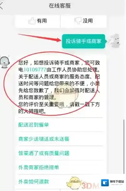 继续点击在线客服,出现一个客服在线窗口,我们可以照着提示输入投诉骑手或者商家。