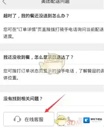 点击在线客服之后,会弹出一系列的问题,我们找到美团配送问题,点击一下。