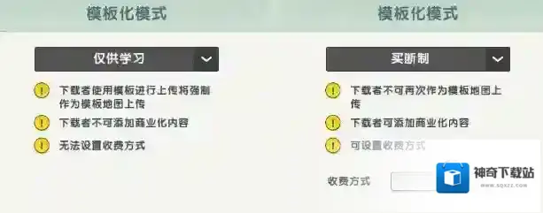 模板地图分为仅供学习和买断制模式,两种模式有这较大的区别哦!