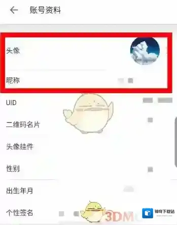 4、最后在打开的账号资料界面,就可以修改头像和昵称了。