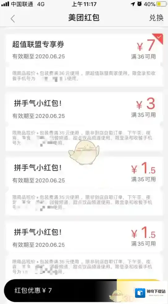 1、超值联盟专享券,需要前往符合条件的超值联盟商家才能使用,在美团外卖首页点击“超值联盟” 2、进入后,可以看到这里面全都是“超值联盟”的商家 3、往下拉,点击“加载更多”,可以看到更多的商家 4、进入想要购买的商家店铺,选好东西,然后点击“去结算”...2025-07-08 -