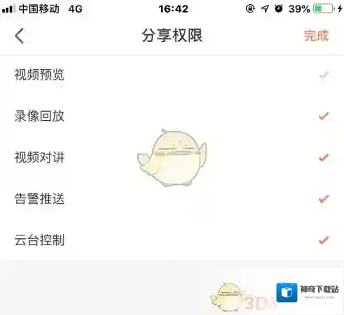 4、设置“分享时段”和“分享的权限”,点击分享权限可以自定义时间段或全时段分享,分享权限可以自由设置预览、回放、告警、对讲等权限。最后点击联系人头像分享就可以了。
