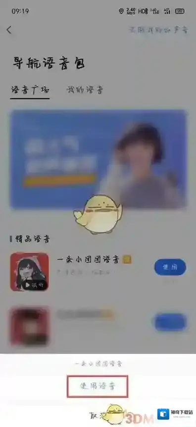 6、下载完成后会弹出一个窗口,点击使用语音就可以更换为一条小团团的语音包;