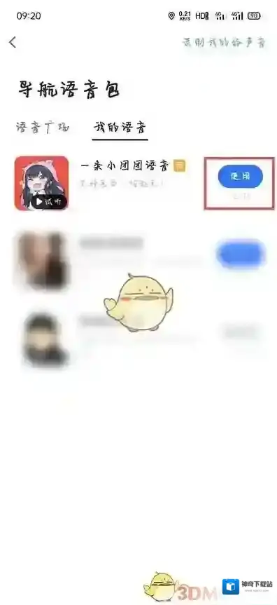 7、也可以在“我的语音”页面找到下载好的一条小团团语音包,选择使用即可。
