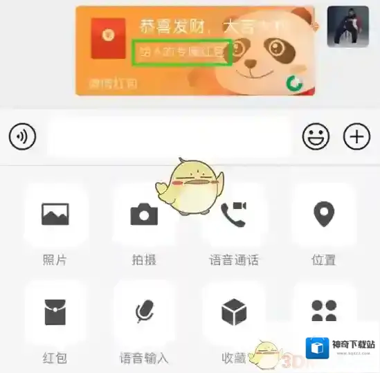 5、发出指定红包后,该红包只有你指定的人可以领取,红包上也会出现“给XXX的专属红包”字样,非指定用户点开红包不会出现领取红包的选项。