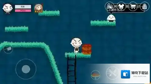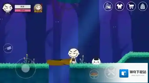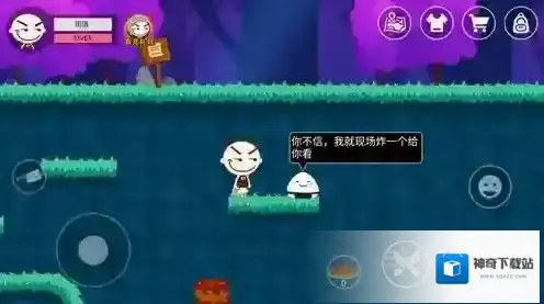 要去下面,首先我们要在第二个地区中炸掉木桥。炸掉木桥需要炸弹,我们跟木桥旁边的饭团对话,知道它的兄弟在前面卖炸弹,所以我们向右去寻找它的兄弟。