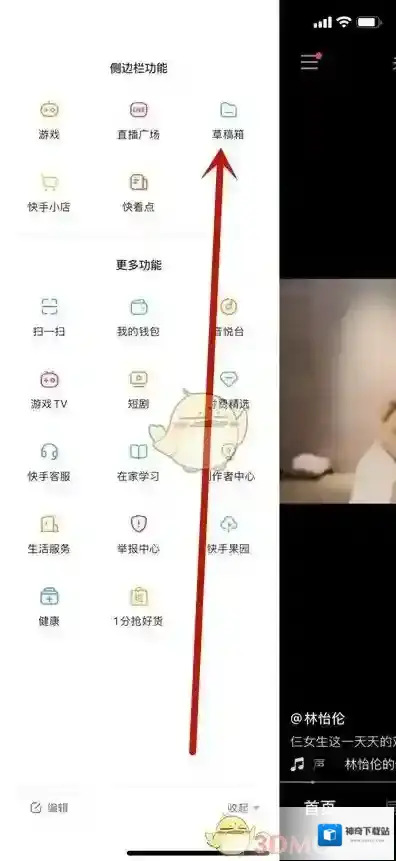 2、进入快手的菜单之后,点击最下面的更多功能。