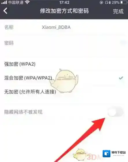 6、最后一步很重要,点击“隐藏网络不被发现”。这样的话以后再别人的wifi页面就不会看到你的wifi名称了。