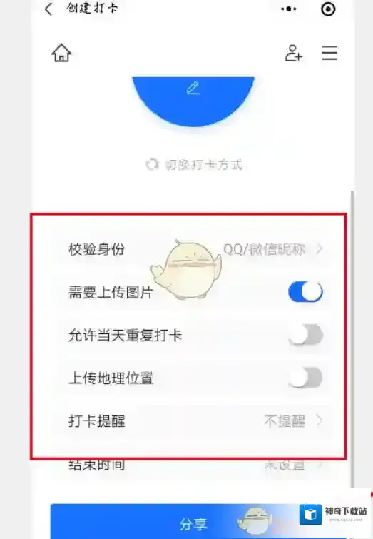 3、选择创建打卡。
