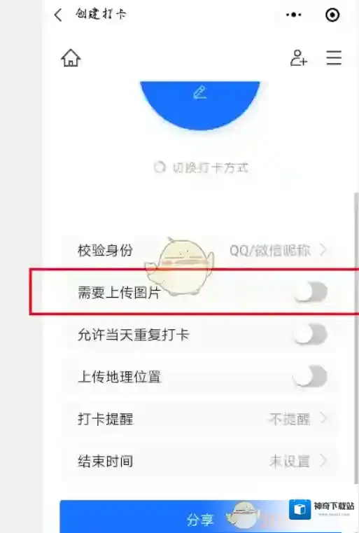 4、打开需要上传图片后的开关按钮。