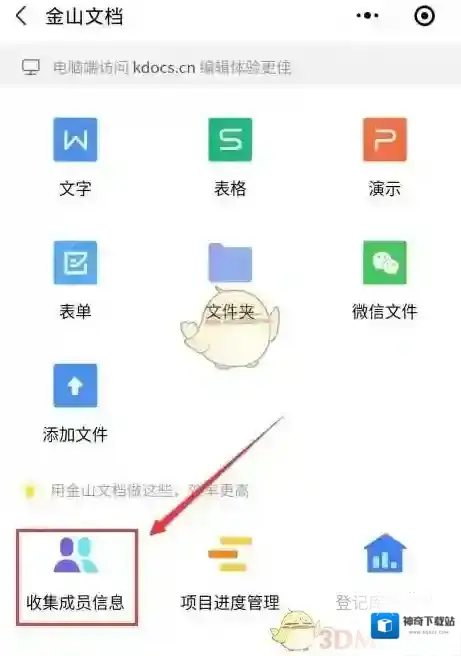 4、在接一下打开页面上,根据自己需要点击相应的文档类型(如:收集成员信息)。见下图