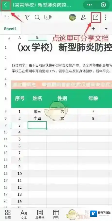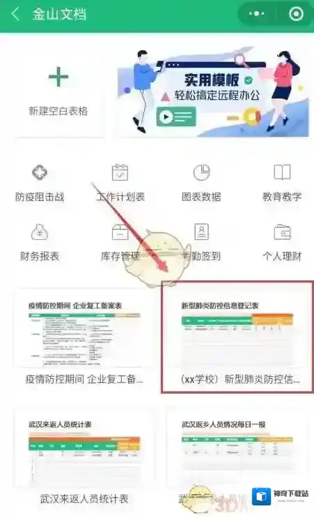 5、在接一下打开页面上,根据自己需要点击相应的文档(如:新型肺炎防控信息登记表)。见下图