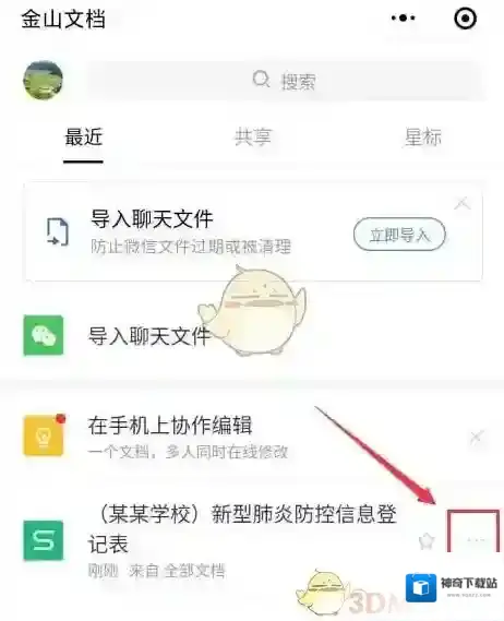 8、返回表格后,接着点击返回键直至退到“金山文档”下“最近”页面。见下图