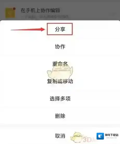 10、在弹出的菜单中,根据需要点击相应的项(如:分享)。见下图