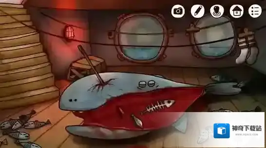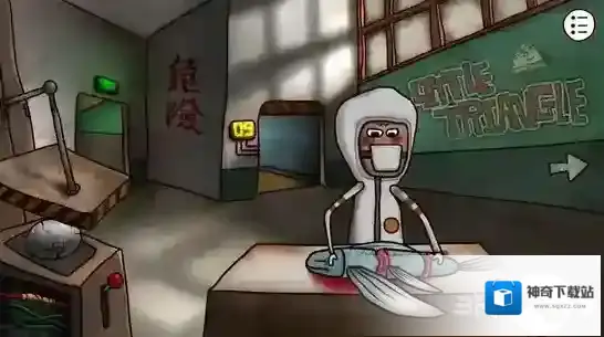 研究员拿起一段飞鱼仔细端详。这也没什么不同啊,奇怪,他嘴里还嘟囔着,不过,比起飞鱼,也许船舱里那巨大的尸骸。欲言又止的他却不明白,这短短几句话给了你无限的启发,你决定拿起他的刀,会船舱看看(点击桌面的刀,带走)。不过在这之前,你并没有忘记,拿出之前得到的胶带,把左下方那因为线路破损而坏掉的机器修好(点击胶带,点击破损的电线使用)