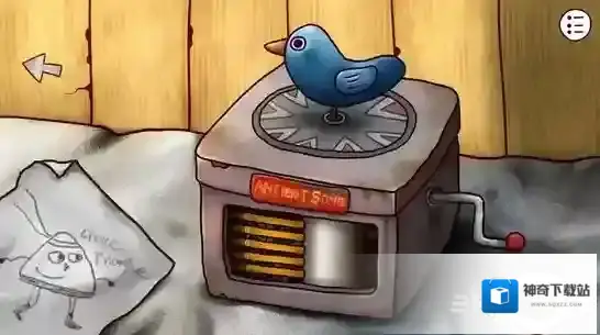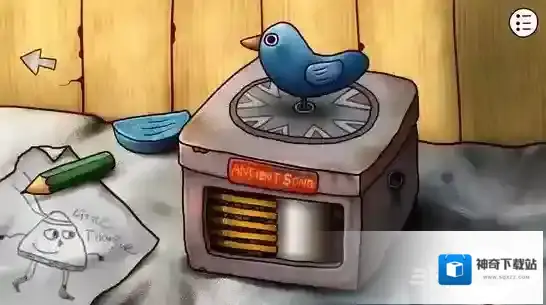 你拿起了铅笔和蓝色石块。看到八音盒,想到刚才小男孩说的动听旋律,你也有些想欣赏,可惜你怎么点击都没有反应,这时你注意到了音乐盒右边的小孔,想到灯塔二楼排气扇取出的摇杆。莫非?(点击摇杆点击八音盒右侧的孔洞使用)