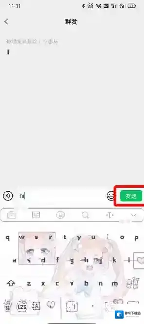 5、在输入框中输入需要群发的消息,然后点击右侧的发送即可群发消息给好友;