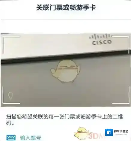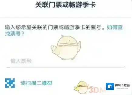 5、在新页面中,可通过扫描门票背后的二维码或直接录入票号来关联门票。一个App帐号*多可关联5张门票。如果和家人朋友一起玩,可以全部关联到一个帐号上,以确保可以一起行动。