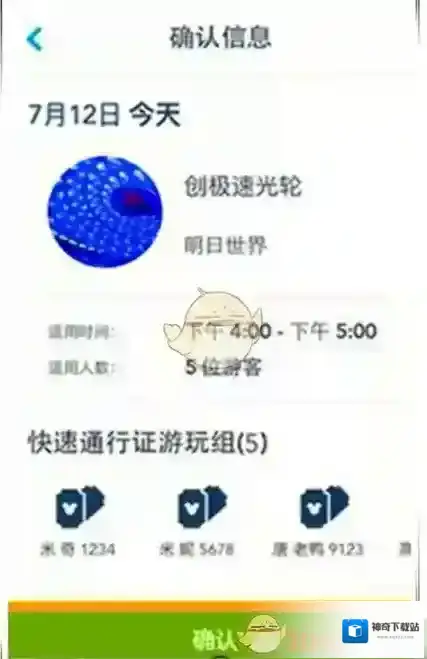 6、关联门票后,选择想要游玩的景点的FP,点击确定完成选择。一次只能选择一张FP,只有等上一张FP领取超过2小时或FP已使用后,才可以领取下一张FP。