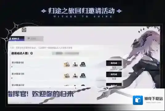 2、邀请码可重复使用,最多同时邀请10名玩家,受邀回归的指挥官在游戏中完成指定活跃任务,邀请指挥官可获得相应奖励。