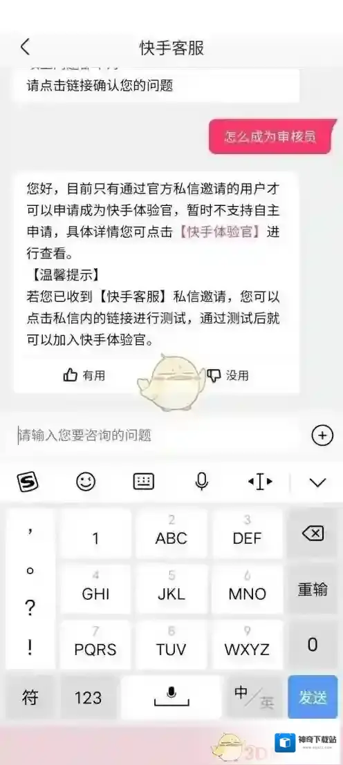 5、最后在线客服页面发送成为审核员问题,根据提示受邀用户加入体验审核员。