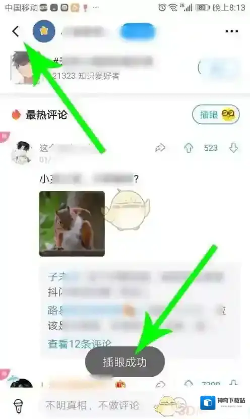 2、打开帖子的评论列表,查看网友评论后点击“插眼”,点击后系统提示“插眼成功”,就可以了。(注:插眼的目的是做标记,方便将来继续查看帖子的评论内容。)