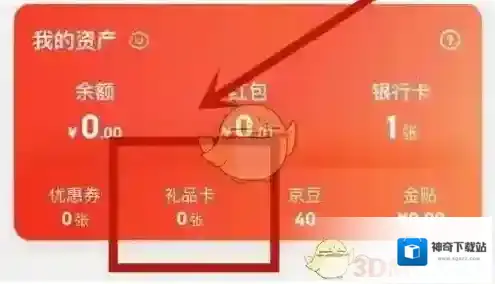2、打开后,点击图示“礼品卡”位置。