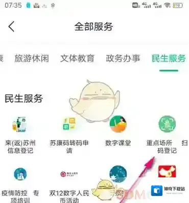 2、在全部服务界面点开民生服务,点击扫码登记图标。