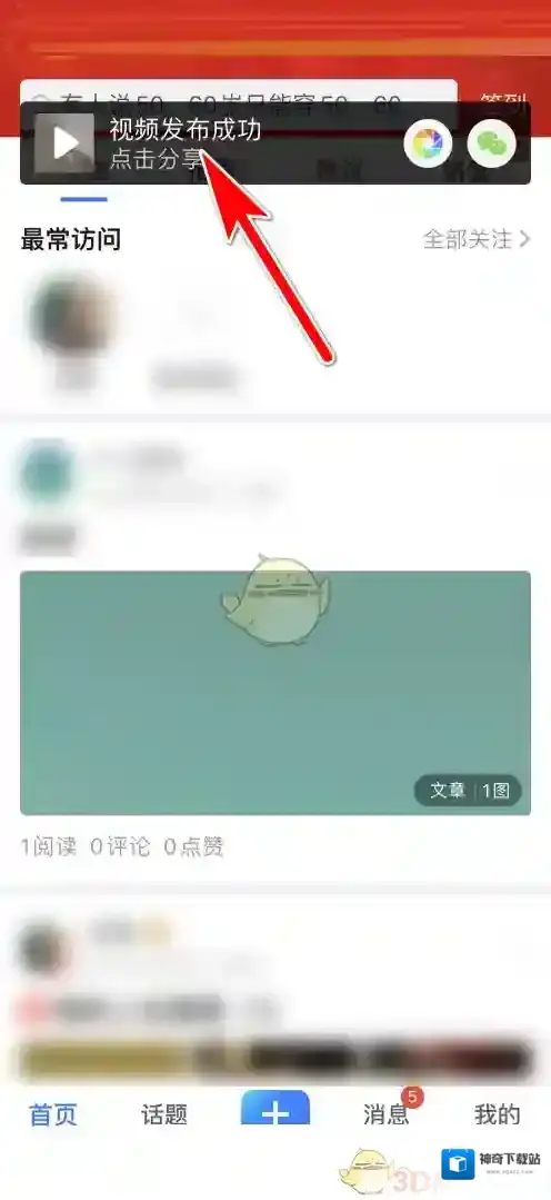5、最后系统弹出视频发布成功的提示,即可发布小视频。
