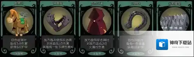 以装备(数量)造成伤害的流派,只靠发条马可够呛,所以一般自动生成护盾/造成伤害的装备也带,能生成装备的行动牌和跟装备有关的祝福都可以拿些,主要还是以量取胜,因为要挨打有罗生门或者吸血更稳妥些。